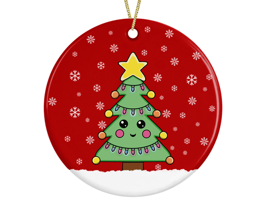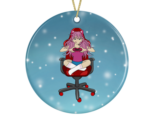 Cute Anime Girl Circle Ceramic Bauble, Christmas Tree Decoration