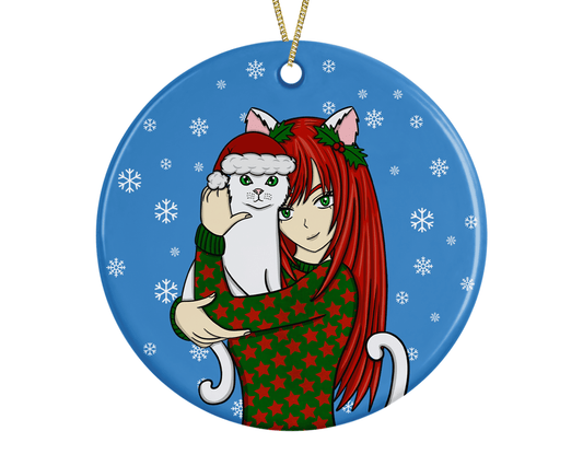 Cute Anime Girl & Cat Christmas Tree Decoration