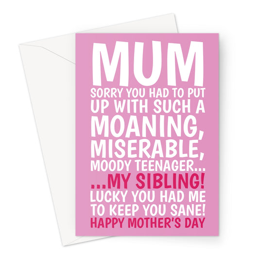 Funny Mother’s Day Card – Sorry For My Sibling | Humorous Card for Mum