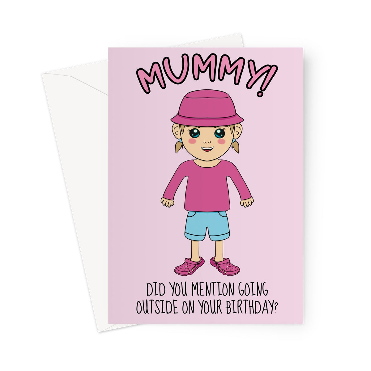 Celebrate your Mummy's birthday with a touch of humour! This hilarious card features a playful girl rocking her Crocs, making it the perfect greeting for a fun-loving Mummy. Show her your love and bring a smile to her face with this unique card.