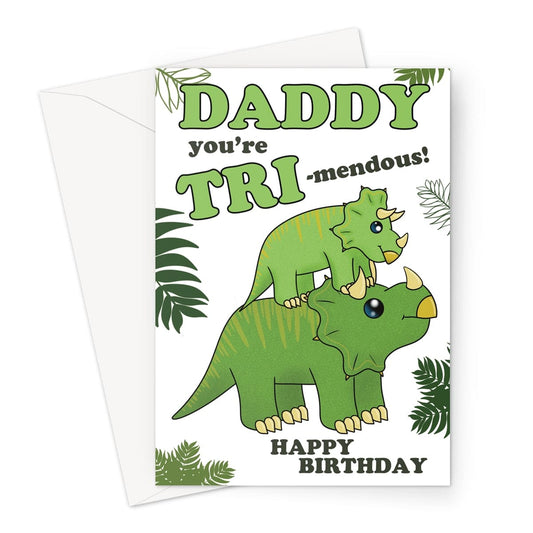 Funny Dinosaur Daddy Birthday Card – Cute Triceratops "You're TRI-mendous!"