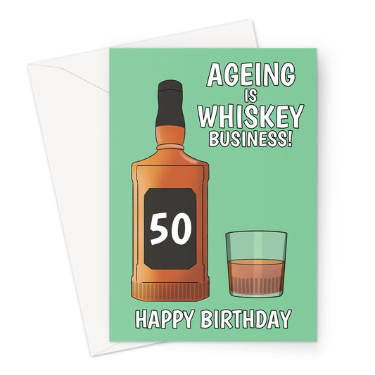 Happy Birthday Card For Dad - Funny Whiskey Bottle & Glass - A5 Greeting Card