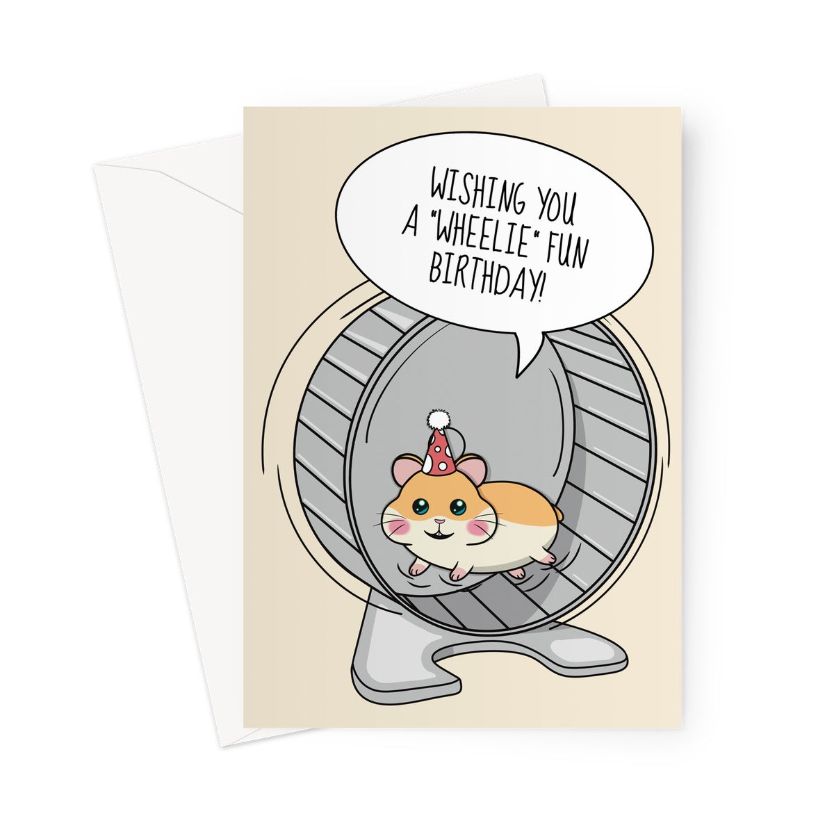Wish them a "wheelie" fun birthday with our adorable Hamster greeting card.