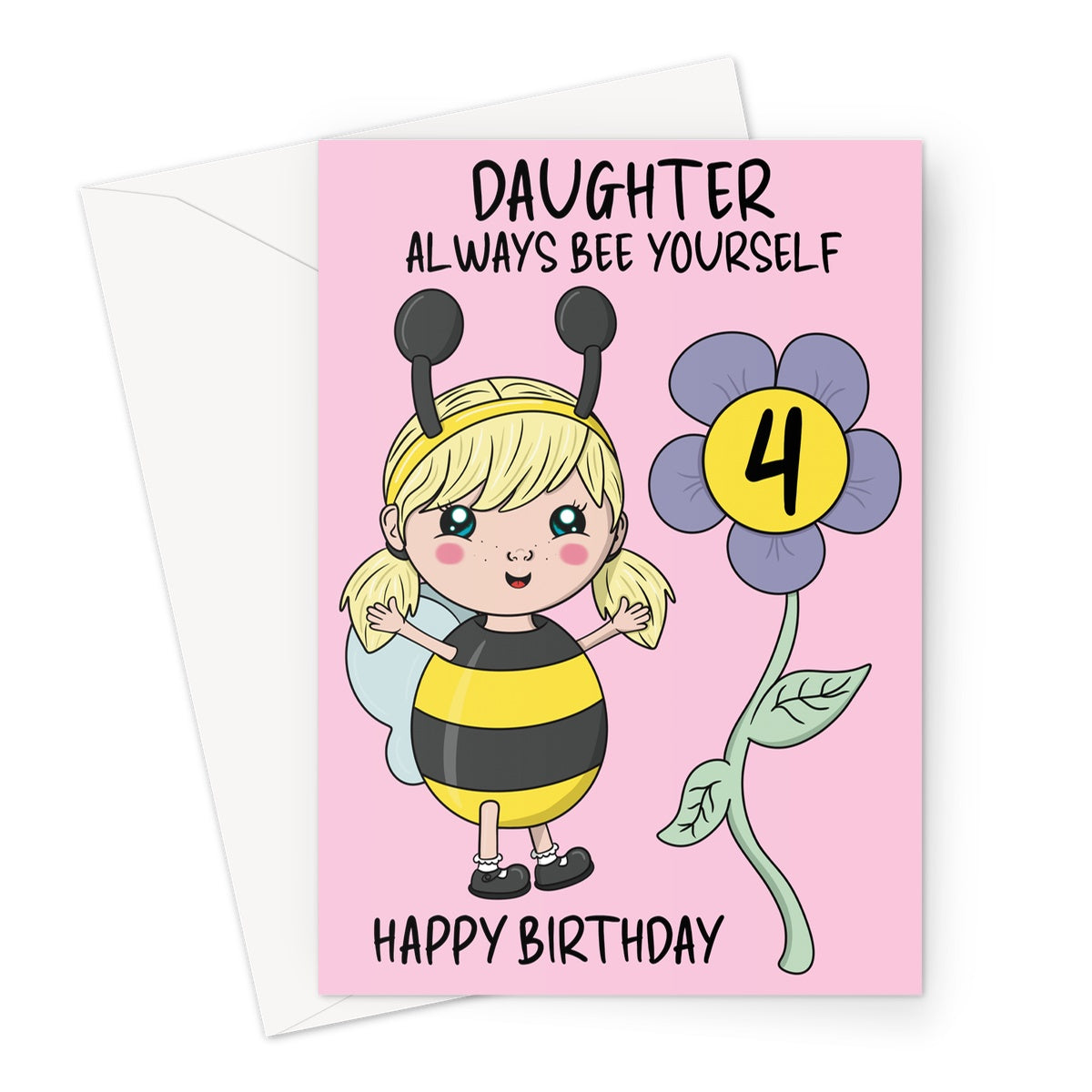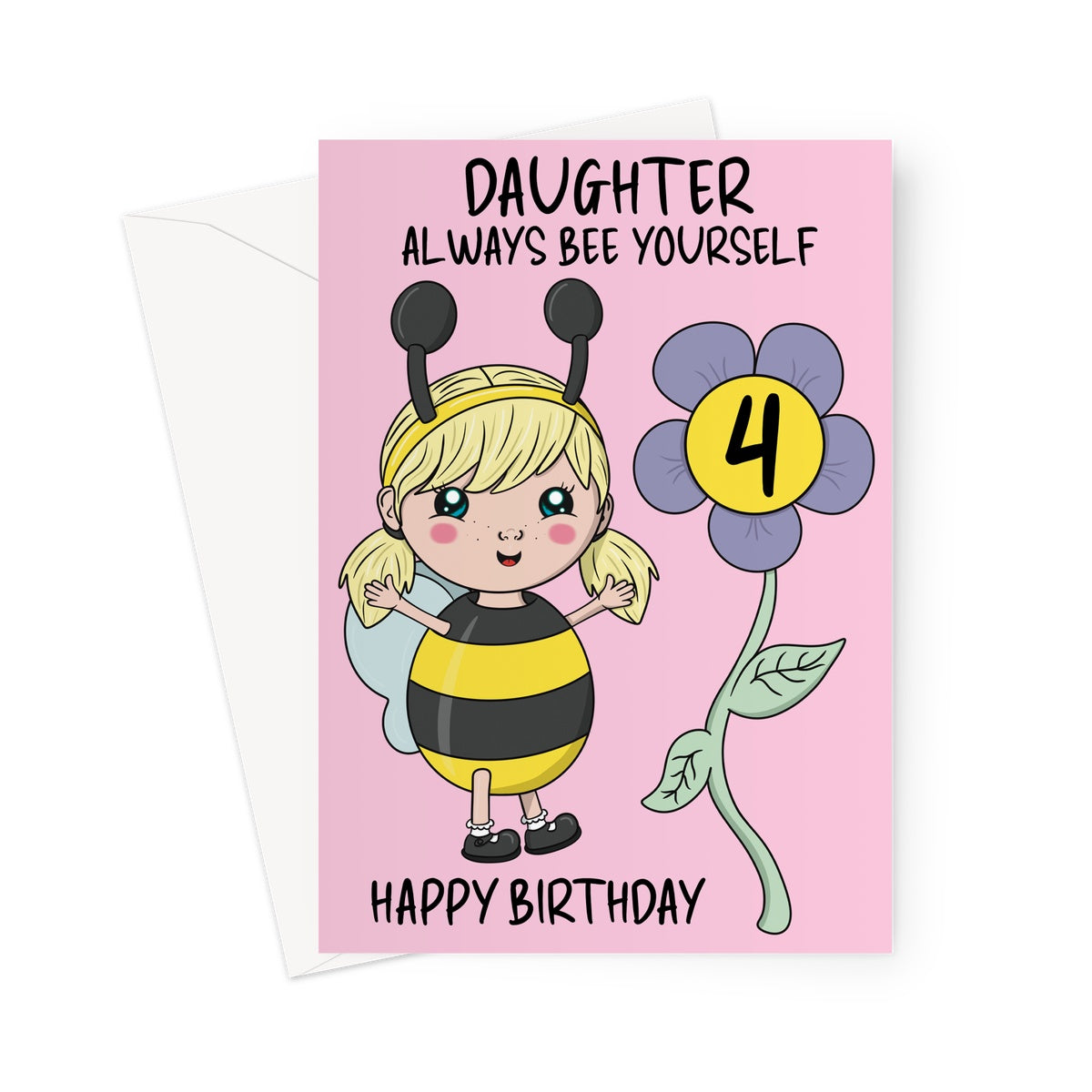 Celebrate your Daughter's 4th birthday and remind her to always embrace her unique self with this adorable bumble bee themed card.